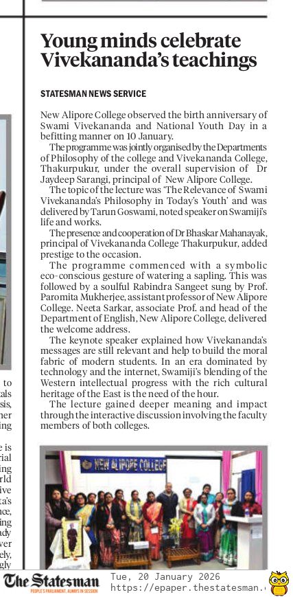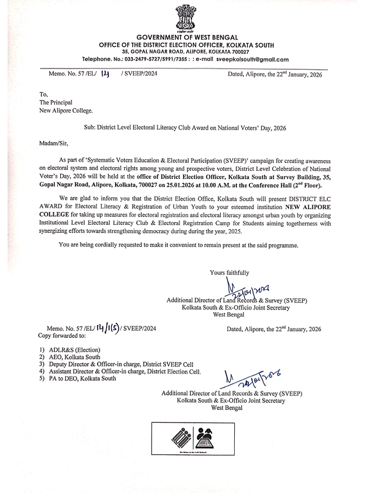 New Alipore College offers nineteen subjects and has a faculty strength of sixty three. The faculty of all departments are highly qualified and competent. Most of the faculty are engaged in research activities and act as resource persons in different fields. Most of them publish regularly in journals of national and international repute. The college has a trained N.C.C officer and two N.S.S offi Read More